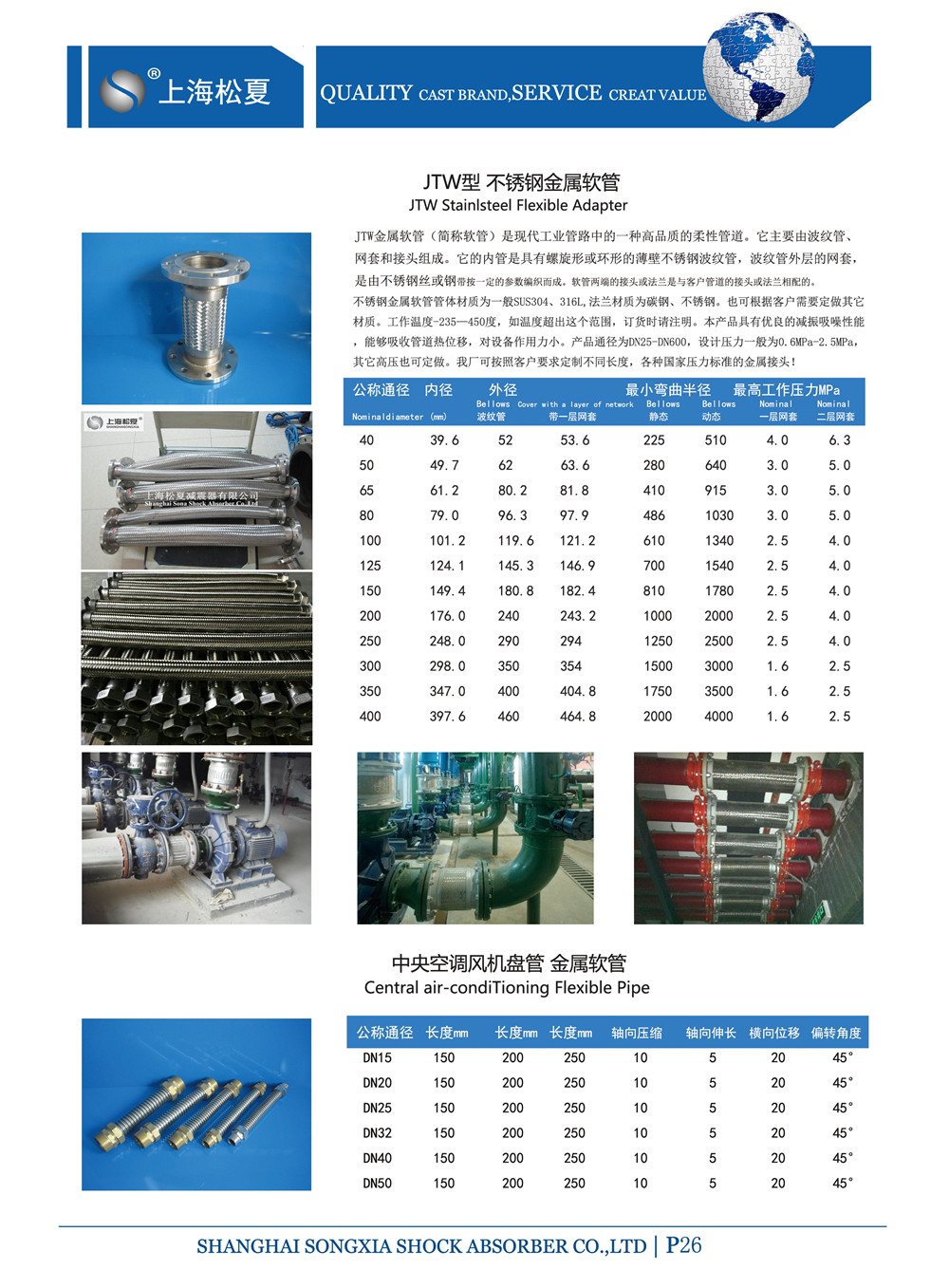 在工程中采用的泵和壓縮機(jī)等設(shè)備在工作狀態(tài)下,它們會(huì)產(chǎn)生振動(dòng)和噪音,危機(jī)工程質(zhì)量和人體健康,金屬軟管具有良好的隔振,降噪作用,在泵和壓縮機(jī)等設(shè)備進(jìn)出口處安裝一定長(zhǎng)度的金屬軟管,可以減振、降噪、提高工程質(zhì)量和使用壽命,但若盲目選用則不僅收不到良好效果,反而會(huì)使管路系統(tǒng)提前振壞。我們?cè)诮梃b國(guó)內(nèi)外先進(jìn)技術(shù)的基礎(chǔ)上,結(jié)合產(chǎn)品實(shí)際使用狀況,規(guī)劃設(shè)計(jì)了泵用金屬軟管JTW系列,供工程設(shè)計(jì)和施工中選用。